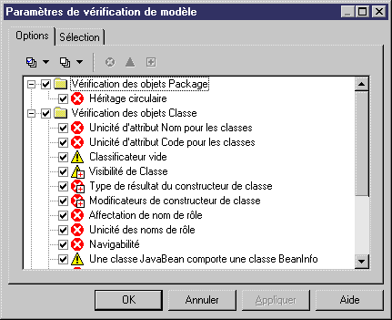 | Modifier un niveau de sévérité | Sélectionnez le paramètre d'objet, puis l'outil Erreur ou Avertissement