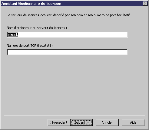 Vous pouvez également saisir le numéro de port TCP si l'administrateur qui a installé le serveur de licences a défini un numéro de port TCP spécifique. Dans ce cas, vous devez préciser le numéro de port personnalisé.