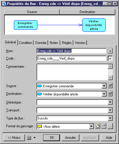 Les feuilles de propriétés des objets de liaison affichent une représentation graphique des relations entre les objets du modèle dans la partie supérieure de la boîte de dialogue.