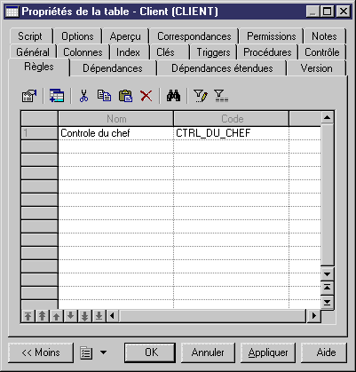 Lorsque vous appliquez une règle de gestion à un objet, la case figurant dans la colonne U (Utilisée) située en regard de cette règle de gestion est automatiquement cochée pour indiquer que la règle de gestion est utilisée par au moins un objet dans le modèle. La colonne U permet ainsi de voir quelles sont les règles de gestion qui ne sont pas utilisées dans le modèle. Vous pouvez alors supprimer ces règles non utilisées le cas échéant.