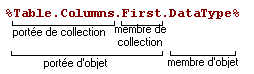 Pour accéder aux membre d'une collection, vous pouvez spécifier une portée de collection. Le caractère '.' (point) se comporte comme un opérateur d'indirection comme dans le langage de programmation Java, le côté droit correspond à un membre de la collection référencée par le côté gauche.