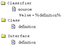 Le contenu de %definition% est celui défini dans Classifier pour une interface, et celui défini dans Class pour une classe.