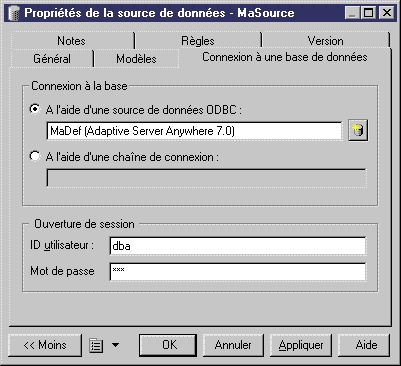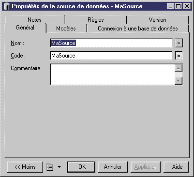 Vous pouvez créer autant de sources de données que vous le souhaitez dans un modèle. Chaque source de données définit la liste des modèles utilisés comme source pour le modèle courant.