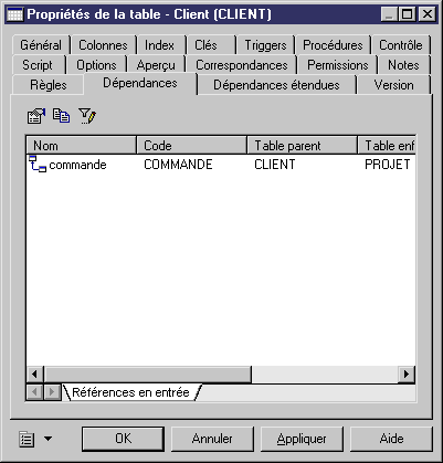 PowerAMC dresse la liste de ces liens dans l'onglet Dépendances de la feuille de propriétés des objets.