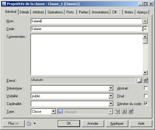 Chaque objet de modèle fait l'objet d'une feuille de propriétés, qui permet d'afficher et d'éditer ses propriétés. Vous pouvez accéder à la feuille de propriétés d'un objet en double-cliquant sur le symbole de son diagramme ou sur l'entrée correspondance dans l'Explorateur de modèles. Pour plus d'informations, reportez-vous à la section "Utilisation des feuilles de propriétés".