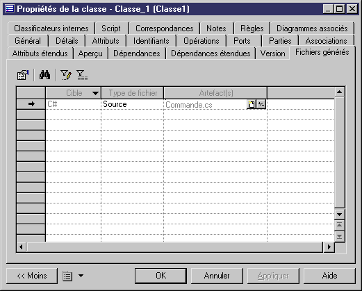 | Aperçu | Permet de visualiser le code généré de l'artefact. |