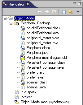 Un fichier Java (.java) et un fichier compilé (.class) s'affichent pour chaque objet dans les packages synchronisés du Navigateur.