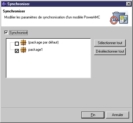 La case à cocher du package déjà synchronisé avec le premier modèle est grisée. Vous ne pouvez pas la cocher pour synchroniser le second modèle.