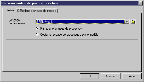 - Sélectionnez un langage de processus dans la liste (les langages collaboratifs ne sont pas disponibles).