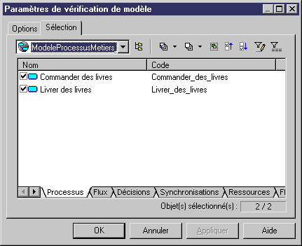 Décochez les cases correspondant aux objets que vous ne souhaitez pas vérifier.