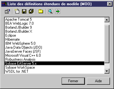 - Sélectionnez Outils→Ressources→Définitions étendues de modèle→Modèles Orientés Objet.