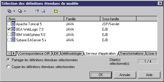 Si vous créez des composant d'EJB CMP, PowerAMC peut générer un descripteur de correspondances O/R et un descripteur de déploiement spécifiques à WebLogic.