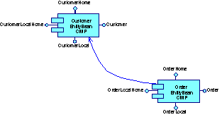 Etant donné qu'un EJB a plusieurs classes et interfaces, PowerAMC utilise un composant pour représenter l'EJB et un diagramme de classes pour la définition des classes et interfaces liées à l'EJB. Le diagramme suivant montre le diagramme de composants UML :