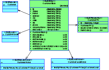 Le diagramme suivant montre le diagramme de classes spécifique à l'EJB Customer :