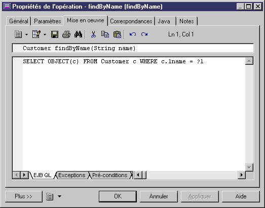 Pour définir EJB-QL :
