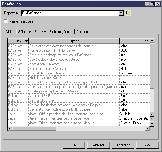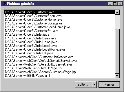 Vous pouvez générer des EJB, des Servlets et des JSP et déployer dans EAServer directement depuis PowerAMC :
