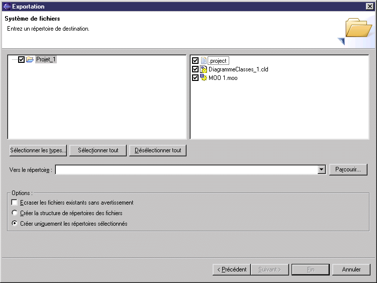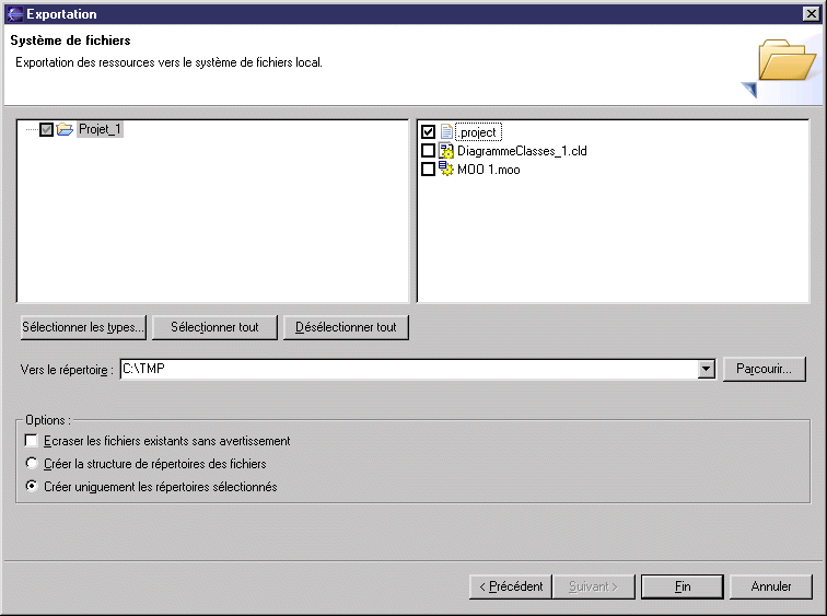 Cliquez sur Parcourir pour sélectionner le répertoire dans lequel vous souhaitez exporter le projet, puis cliquez sur OK dans la boîte de dialogue Exportation vers un répertoire.