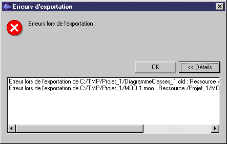 Cliquez sur Détails. Le projet ne peut pas être exporté car il contient des ressources PowerAMC (dont le fichier de modèle) qui ne sont pas locales.
