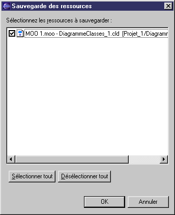 Si vous n'avez pas enregistré les ressources PowerAMC, la boîte de dialogue Enregistrement des ressources vous invite à procéder à la sauvegarde.
