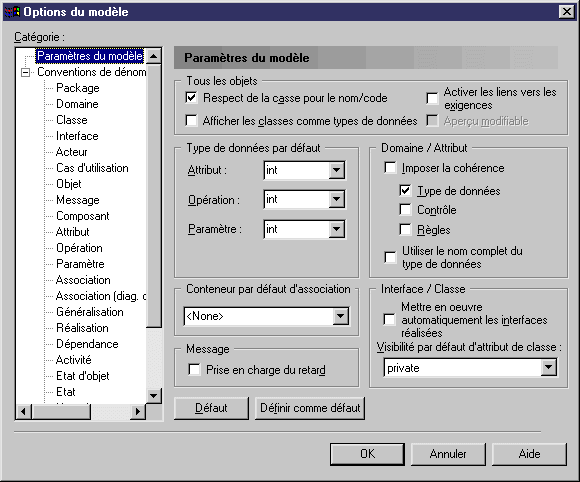 Dans la vue Explorateur de modèles, pointez sur le nom d'un modèle, cliquez le bouton droit de la souris, puis sélectionnez Options du modèle.