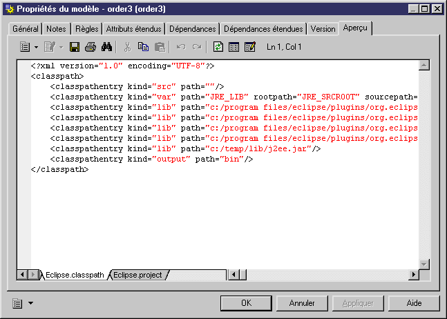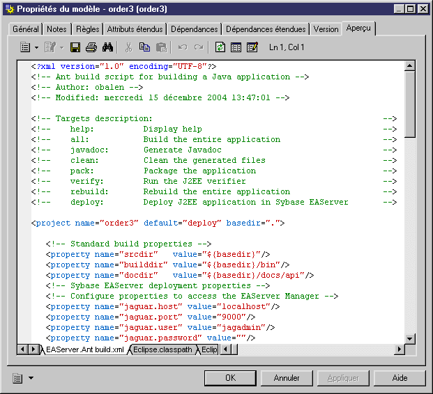 Vous pouvez afficher un aperçu des fichiers .project et .classpath d'Eclipse et du fichier Ant build.xml depuis PowerAMC.