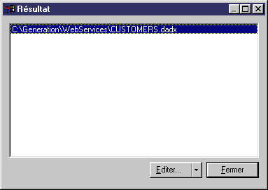 Une fois la génération terminée, la boîte de dialogue Résultats s'affiche avec les chemins des fichiers DADX.