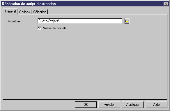 seront générées dans le fichier de script. Les scripts d'extraction répertorient toutes les instructions select