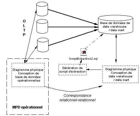 Le lien entre la base de données opérationnelle et la base de données de data warehouse ou de data mart est une correspondance relationnel-relationnel.