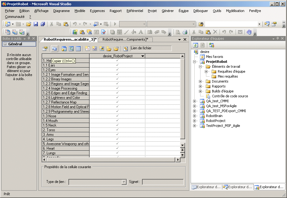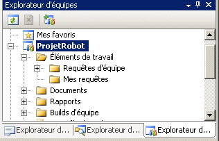 Ce faisant, vous affichez le projet Team System associé dans l'Explorateur d'équipes :