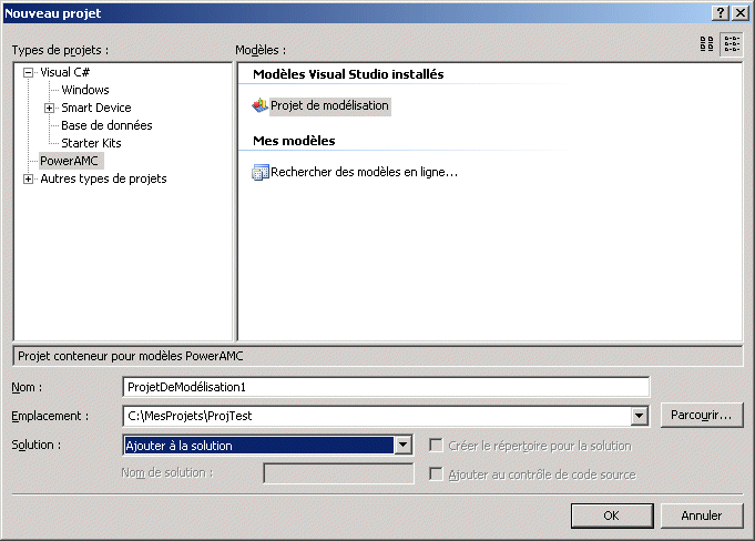 Pour créer un projet de modélisation dans une solution existante :