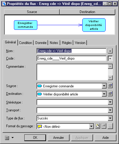 Vous pouvez également double-cliquer sur n'importe quel libellé (nom, code, rôle ou cardinalité) de l'objet de liaison pour ouvrir sa feuille de propriétés.