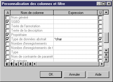 Pour personnaliser l'affichage des colonnes et/ou définir une expression de filtre :