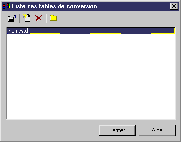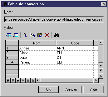 - Cliquez sur l'outil Nouveau, saisissez un nom pour la table de conversion et cliquez sur Enregistrer pour afficher la boîte de dialogue Table de conversion.