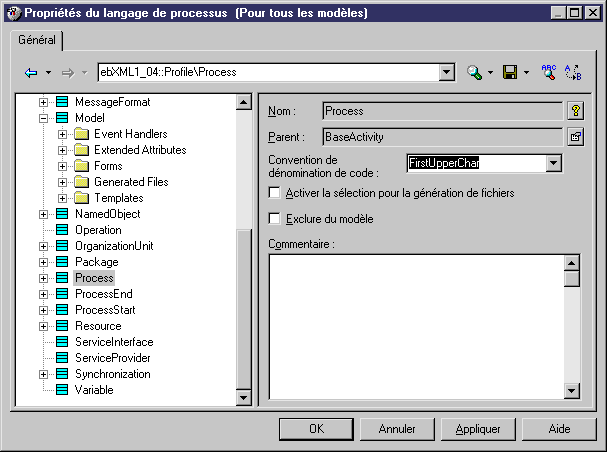 - Utiliser la commande Changer de langage cible courant pour appliquer le même fichier de ressource au modèle mais en lui appliquant les nouvelles conventions de dénomination