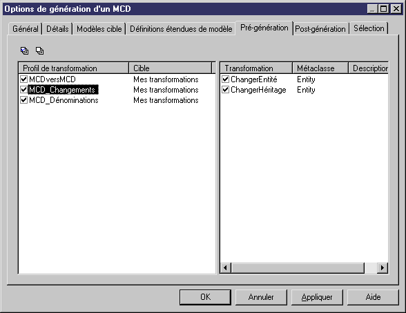 Les profils de transformation peuvent être utilisés au cours de la génération de modèle :
