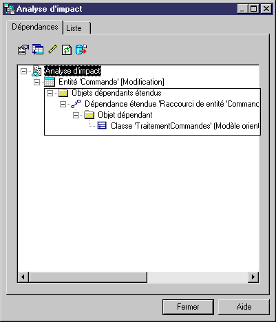 Lorsque vous créez une dépendance étendue, PowerAMC crée automatiquement un raccourci vers l'objet lié dans le modèle courant et un sous-onglet Objets dépendants étendus est automatiquement ajouté dans l'onglet Dépendances de l'objet lié.