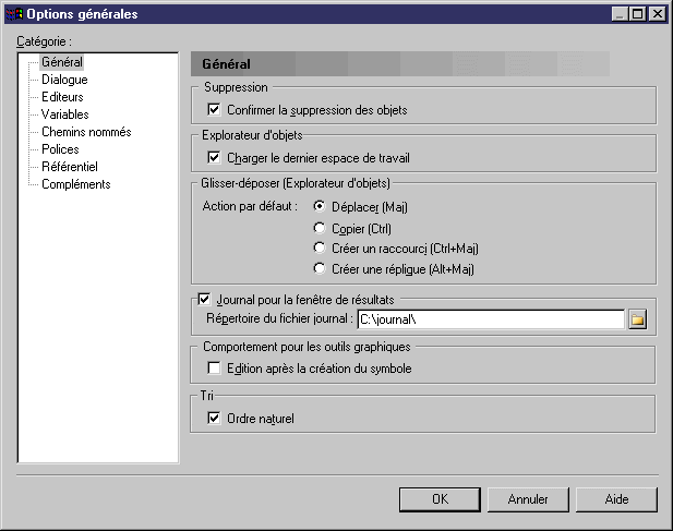 Vous pouvez modifier le comportement par défaut du glisser-déposer à partir de la boîte de dialogue Options générales.