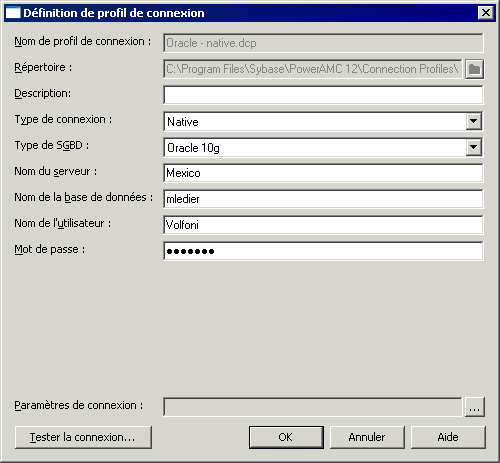 - Sélectionnez SGBD→Configurer les connexions pour afficher la boîte de dialogue Configuration des connexions aux données, puis cliquez sur l'onglet Profils de connexion :