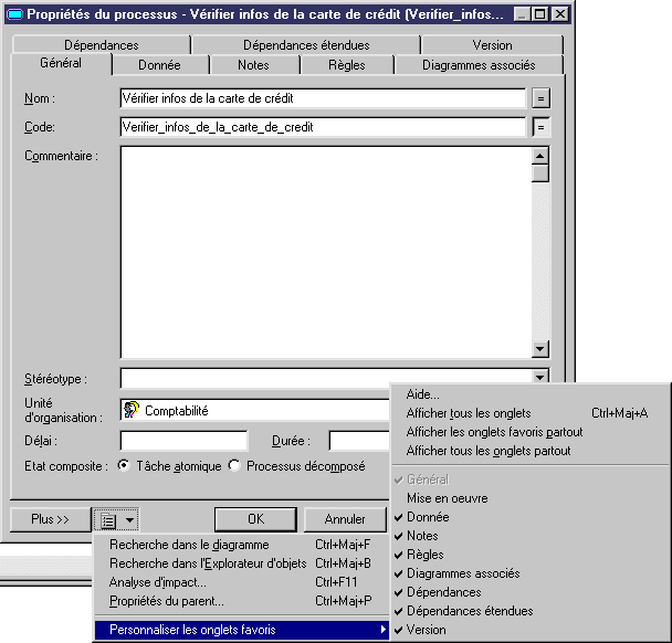 PowerAMC pouvant contenir une grand variété d'informations relatives aux objets de votre modèle, les feuilles de propriétés peuvent devenir surchargées.