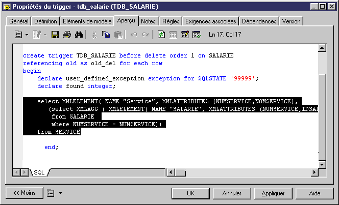 A l'issue de la génération, la macro SQLXML est remplacée par la requête SQL/XML de l'élément global.