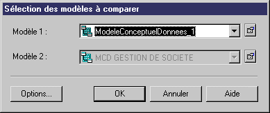 - Sélectionnez Outils→Comparer des modèles pour afficher la boîte de dialogue Sélection des modèles à comparer.