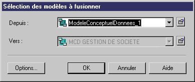 SGBD et Langage Si vous souhaitez fusionner deux modèles physiques, vous devez sélectionner deux modèles utilisant le même SGBD. Si vous souhaitez fusionner deux modèles objet, vous devez sélectionner deux modèles de même langage.