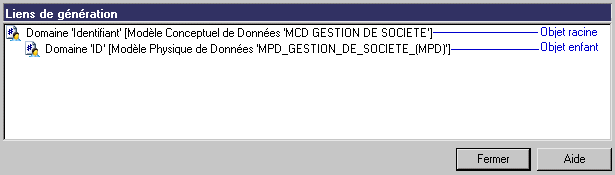 Vous pouvez double-cliquer sur un lien de génération dans ce volet pour visualiser les propriétés de l'objet source ou cible.