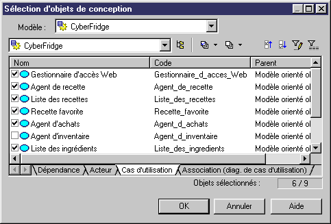 Une boîte de dialogue Sélection d'objets de conception s'affiche.