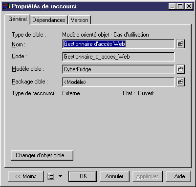 La feuille de propriétés du raccourci vers l'objet de conception s'affiche.