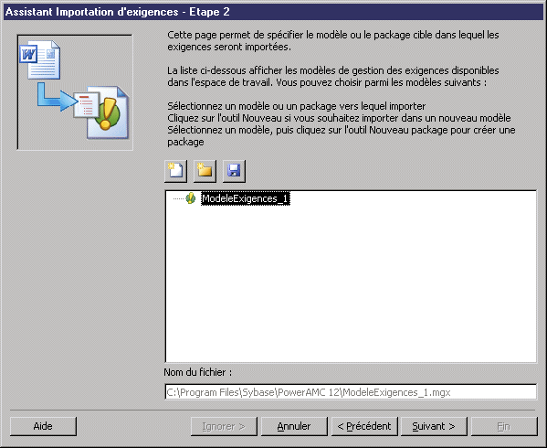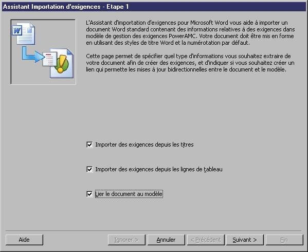 Si PowerAMC n'est pas ouvert, il est lancé lors de cette étape, et l'Assistant Importation des exigences s'affiche :