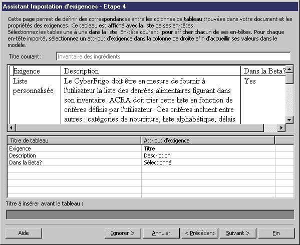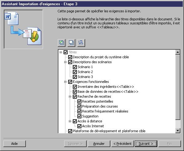 - Importer des exigences depuis les lignes de tableau