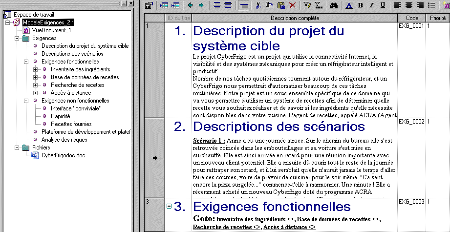 Vous pouvez créer un modèle de gestion des exigences à partir d'un document MS Word en exportant ce document depuis Word ou en l'important depuis PowerAMC.
