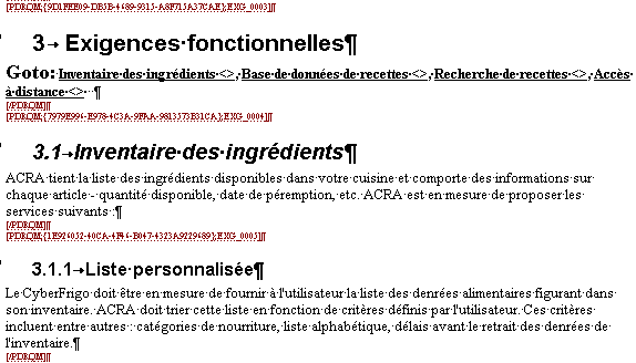 Chaque exigence est placée entre une balise de début d'exigence [PDRQM] et une balise de fin d'exigence [/PDRQM]. Pour pouvoir afficher les balises d'exigences, cliquez sur l'outil Afficher/Masquer :