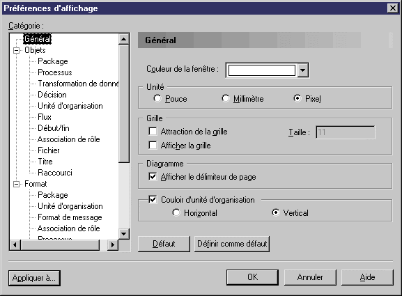 Pour définir une préférences d'affichage de MPM, sélectionnez Outils→Préférences d'affichage ou pointez sur un emplacement vide dans le diagramme et cliquez le bouton droit de la souris, puis sélectionnez Préférences d'affichage dans le menu contextuel.
